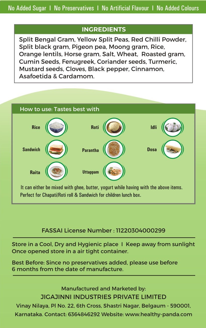 500 Gm ASSORTED CHUTNEY PODI COMBO - (PEANUT CHUTNEY+ DAL CHUTNEY + IDLY DOSA CHUTNEY + DRY COCONUT CHUTNEY + FLAX SEED CHUTNEY) 5 X 100gms EACH